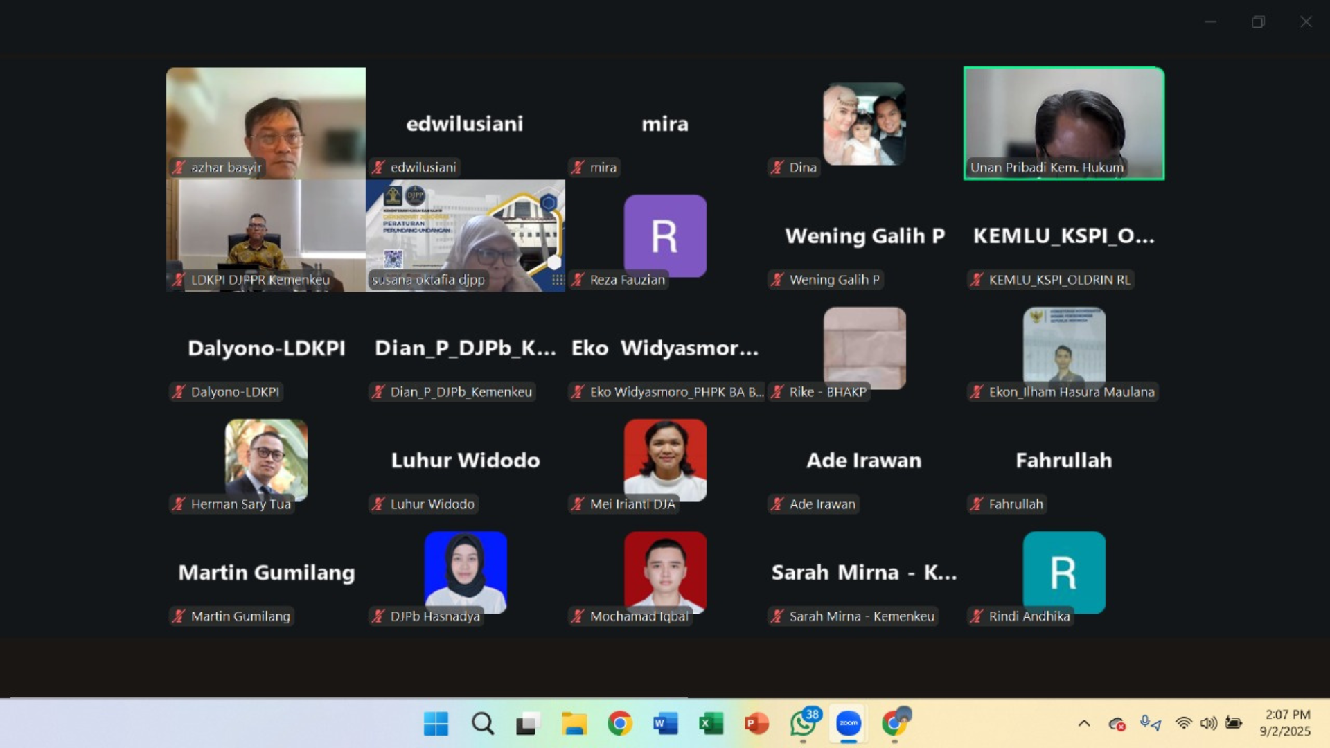 Jakarta – Direktorat Jenderal Peraturan Perundang-undangan Kementerian Hukum menggelar rapat harmonisasi Rancangan Peraturan Menteri Keuangan (PMK) tentang Tata Cara Pengelolaan Dana Kerja Sama Pembangunan Internasional pada Selasa, (02/09/2025). Rapat yang berlangsung secara daring ini dibuka dan dipimpin oleh Direktur Harmonisasi Peraturan Perundang-undangan II, Unan Pribadi. Rapat ini dihadiri oleh perwakilan lintas kementerian dan lembaga, termasuk Kementerian Koordinator Bidang Perekonomian, Kementerian Keuangan, Kementerian Luar Negeri, Bappenas, Kementerian Sekretariat Negara, serta tim teknis dari Direktorat Harmonisasi Peraturan Perundang-undangan III.