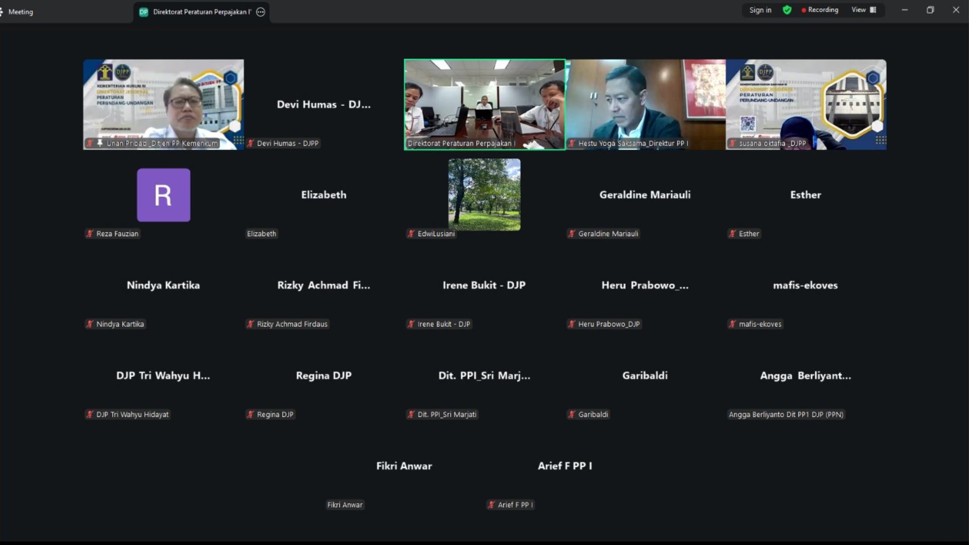 Jakarta – Direktorat Jenderal Peraturan Perundang-undangan (DJPP) Kementerian Hukum Republik Indonesia menggelar Rapat Harmonisasi Rancangan Peraturan Menteri Keuangan (RPMK) tentang Tata Cara Pemungutan Pajak Pertambahan Nilai (PPN) atas Penyerahan Barang Kena Pajak Melalui Penyelenggara Lelang pada Senin (15/9/2025). Rapat yang berlangsung secara daring melalui Zoom Meeting ini dibuka secara resmi oleh Direktur Harmonisasi Peraturan Perundang-undangan III, Unan Pribadi.