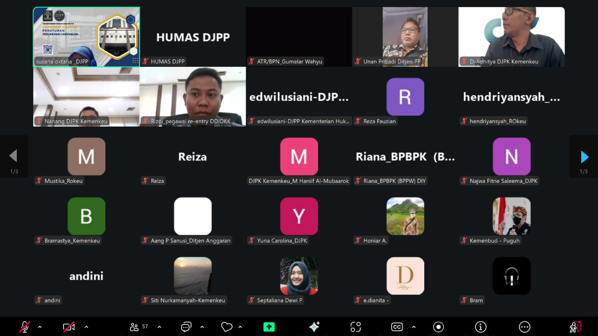 Jakarta - Direktorat Harmonisasi Peraturan Perundang-undangan III (HPP III) di bawah naungan Direktorat Jenderal Peraturan Perundang-undangan (DJPP) Kementerian Hukum Republik Indonesia menggelar Rapat Pleno Pengharmonisasian Rancangan Peraturan Menteri Keuangan (PMK) tentang Perubahan atas PMK Nomor 163 Tahun 2023 tentang Pengelolaan Dana Keistimewaan Daerah Istimewa Yogyakarta (DIY), Kamis (9/10). Rapat yang diselenggarakan secara virtual ini dibuka oleh Unan Pribadi, Direktur HPP III dan dilanjutkan dengan sesi pembahasan yang dipandu oleh Susana Oktavia, Perancang Peraturan Perundang-undangan Ahli Madya.