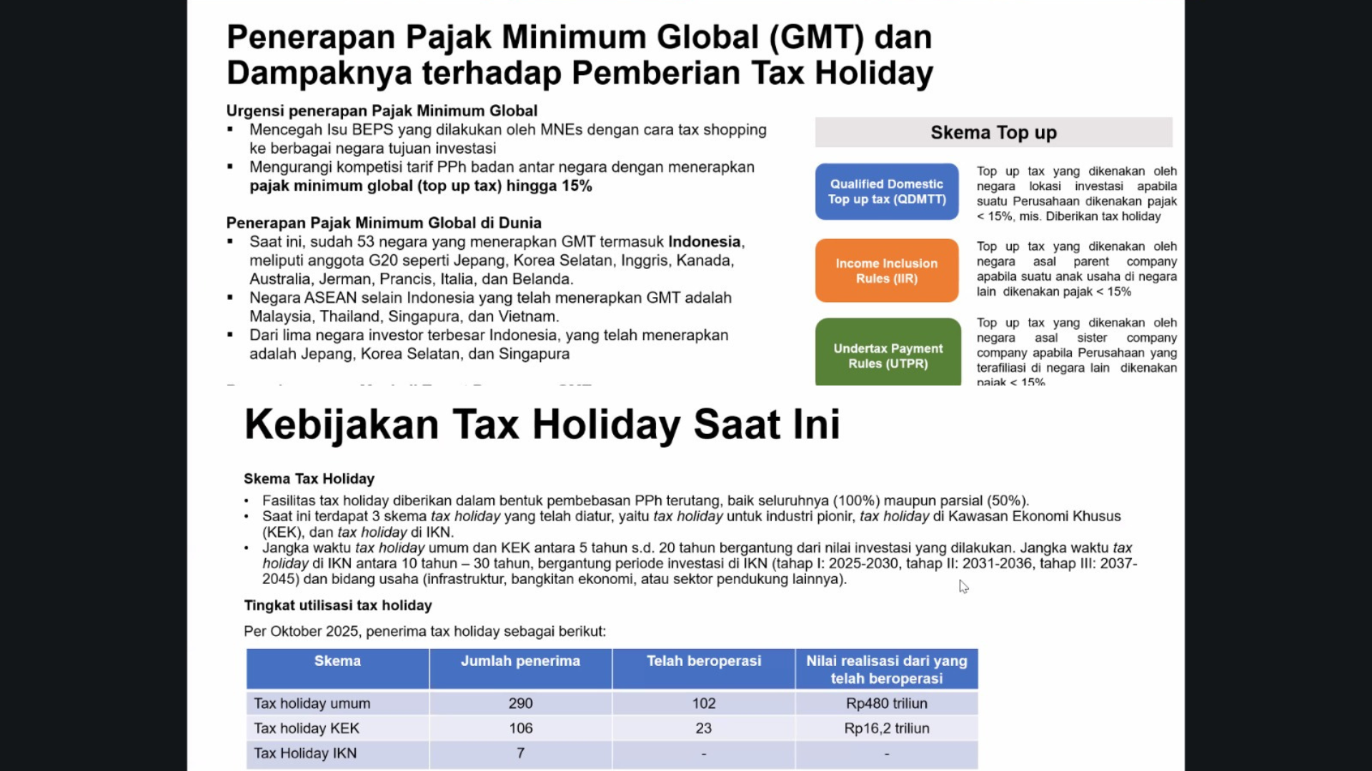 Pembahasan difokuskan pada penyesuaian ketentuan pemberian dan pengajuan fasilitas pengurangan Pajak Penghasilan Badan bagi industri pionir yang masa berlakunya akan berakhir pada akhir tahun 2025. Penyesuaian ini dinilai penting untuk tetap mendorong peningkatan investasi dan pertumbuhan ekonomi nasional melalui dukungan fiskal yang tepat sasaran dan berkelanjutan.