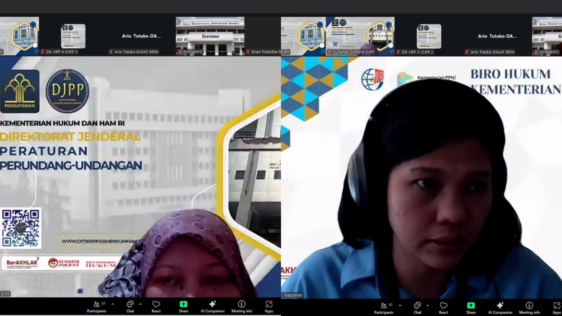 Jakarta – Direktorat Harmonisasi Peraturan Perundang-undangan III (HPP III) di bawah Direktorat Jenderal Peraturan Perundang-undangan (DJPP) Kementerian Hukum melaksanakan Rapat Pleno Pengharmonisasian Rancangan Peraturan Menteri Perencanaan Pembangunan Nasional (PPN)/Kepala Badan Perencanaan Pembangunan Nasional (Bappenas), tentang Rencana Aksi Desain Besar Manajemen Talenta Nasional Tahun 2025–2029. Rapat yang diselenggarakan secara daring pada Senin, 17 November 2025 ini dibuka oleh Susana Oktavia, Perancang Peraturan Perundang-undangan Ahli Madya.